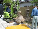 九月になり、すっかり秋の気配のする大阪・・・ではなく、今日も、35度くらいありそうな暑い日です。庭の東のはしにあった庭石を移動してもらっています。馬のような形をした石で、幼い頃よくまたがって遊びました。昭和47年に本堂を新築したときに移動して、見えないところにありました。離れの建物の下に楠木の根が入り込んでいるので、それを抜き、石を置いてもらいます。後は、桃の木を植えていただきます。昔、桃の名所だったので・・・。砂苔も植える予定です。枯れないといいんだけどな・・・