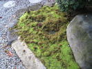 ご覧の通り、砂苔(すなごけ)を敷いてもらいました。庭全体が見違えるようになりました。何枚も写真撮りました。母も妻も喜んでくれてます。以前、晉山式の時、杉苔を植えましたが、大阪独特の暑さで、見る影も無く、全滅しました。旭区のk寺さんが、杉苔を上手に育てておられるので、何とかならないかと思ってました。ネットで、砂苔がとても丈夫だと知り、出入りの造園業者に調べてもらったところ、大阪府立大学の先生が、砂苔の開発をしてることが分かりました。メンテナンスもほとんどいらず、丈夫だそうなので、3年物の苔を敷いてもらいました。京都の禅寺には、まだまだ及びませんが、少し禅寺らしい庭に近づきました。とてもうれしいです! ヤッタネ!