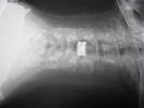 昨年、夏頃から左腕に鈍痛があり、それがだんだん悪化し、左手に力が入らなくなりました。 MRIの検査の結果、脳神経外科で、頚椎の椎間板を切り取り、人工骨(チタン製)を入れることになりました。首の前を、10CMくらい切開し、2時間半の手術でした。写真は、右側が肩で、左側が頭になります。真ん中の白い部分が、人工骨です。