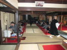 下の写真は、皆さんに、斎座(お昼ご飯)の精進料理を出しているところです。衣を着て、お膳を運んでるのが、Kさんです。東京から、手伝いに来て下さいました。Kさん、いつも有難う。