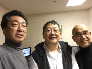 演奏後、中田くんに連れられ楽屋におじゃましました〜(左より、中田昌樹・児玉さん・私)